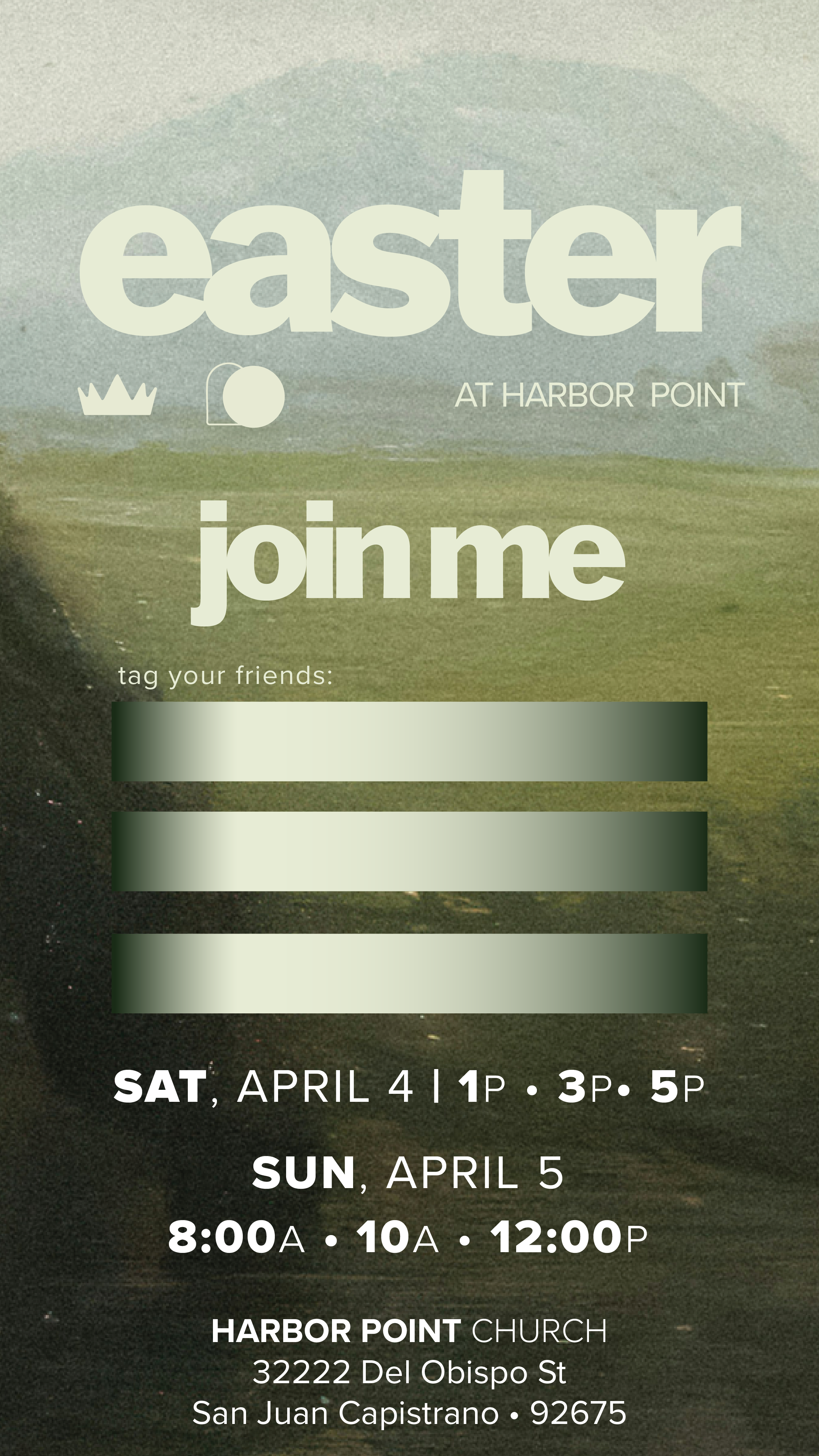 This Easter, we’re excited to invite you to celebrate with us at one of two locations: our Harbor Point campus or The Swanner House in San Juan Capistrano. No matter which location you attend, you’ll be warmly welcomed.
